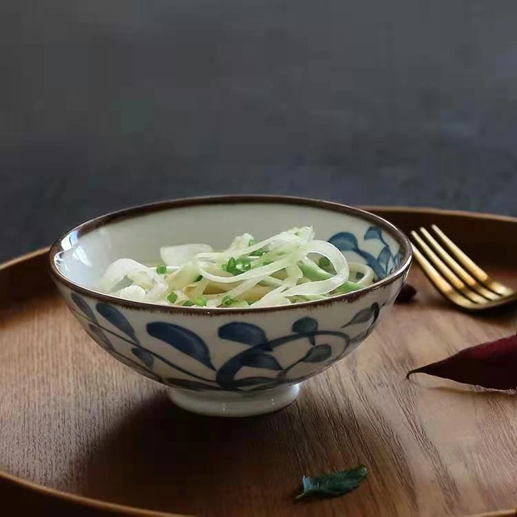 - Materials: Glazed ceramic, with blue painted pattern
