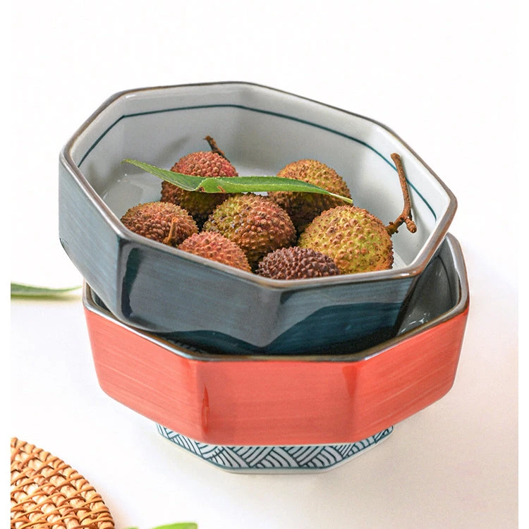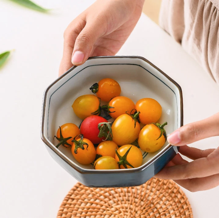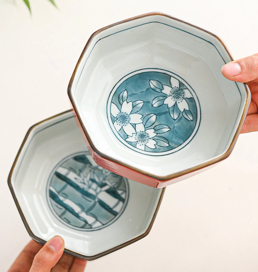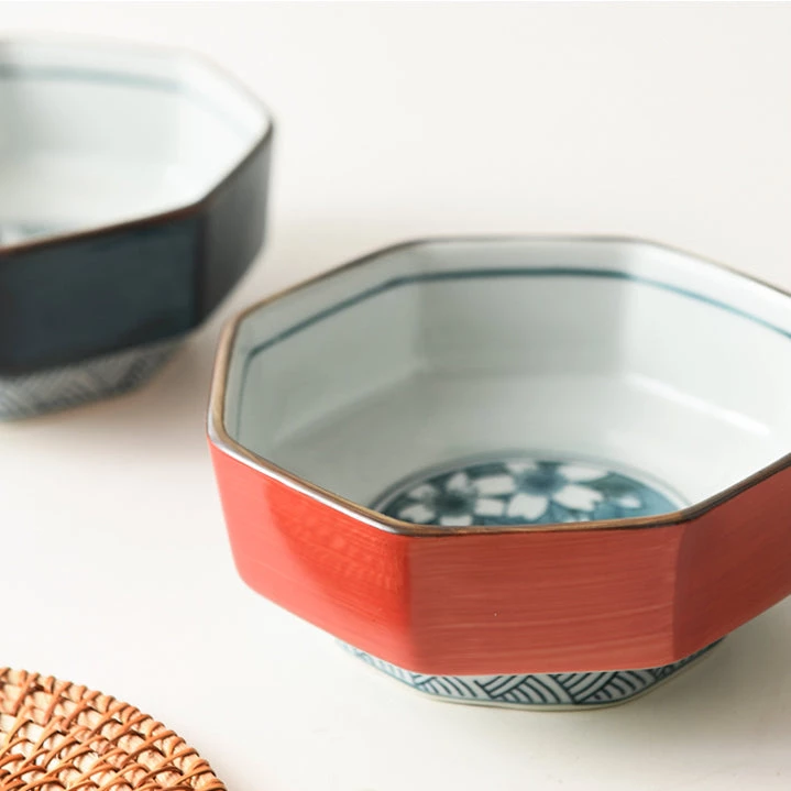Love Japanese dishes? Indulge in an authentic Japanese dining experience by serving your favorites in these Ako Blue and Red Japanese Octagonal Serving Bowls. These are glazed ceramic bowls with a soft octagonal shape. On the bowl’s body is a hand painted blue pattern. The 14.5cm size is just perfect for serving fruit or appetizers.Â