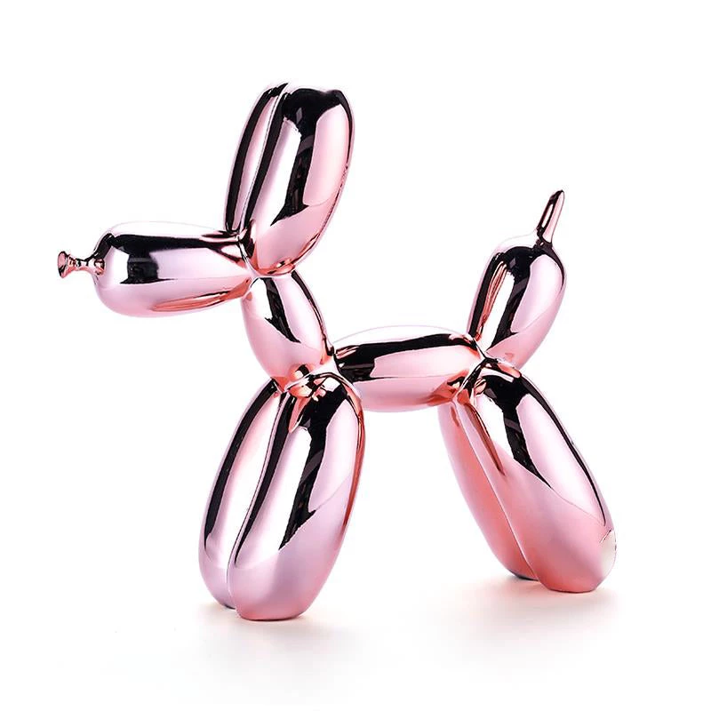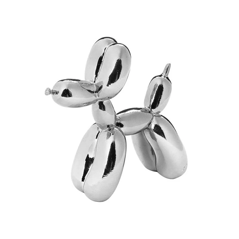 This playful decorative piece is inspired by an American artist known for his pop art sculptures of every day objects, finished in bright, mirrored colours. Our reproduction of his famous Balloon Dog mini is inspired by the original and comes in neon pink, gold or silver. This is a replica item, and not associated with Jeff Koons.