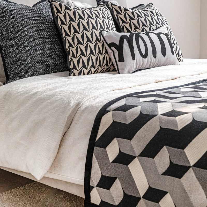 Transform your space with this set of Black & White Pattern Bed Cushions. Get the whole set or build your own bundle to style your bedroom or living space. This cushion set is available in four different styles and sizes, with an option to include a bed runner suitable for a 1.5m or 1.8m bed.