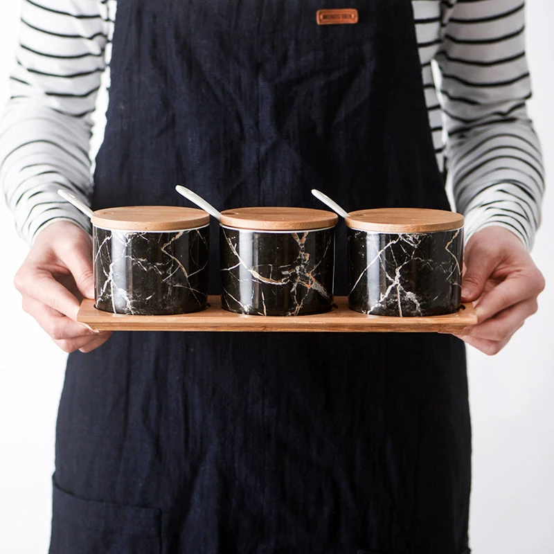 We love the look of marble – it’s such a beautiful material with such a unique pattern. Though, this kitchen condiment set is ceramic masquerading as marble, it looks great and is arguably more practical for daily use in the kitchen or dining table. It comes complete with natural bamboo wood lids that make for a stylish and practical closure.
