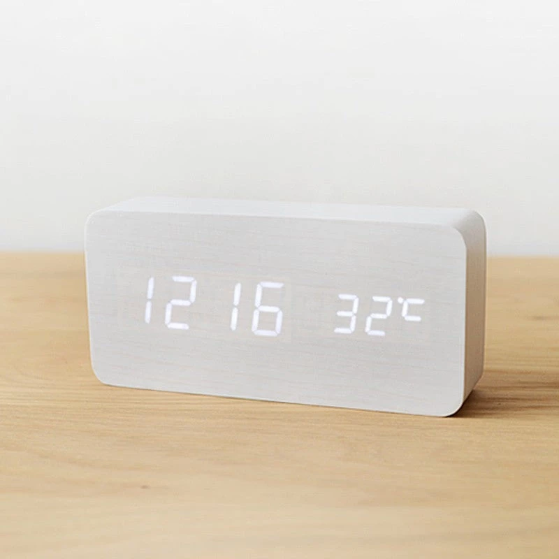 This digital alarm block clock comes in a matt, off-white, wood-look finish. It’s block shape and rounded edges give it a modern look that makes a nice addition to your desk, book shelf or besdside table. And with time, alarm, snooze and temperature, it’s a great companion for all things time!