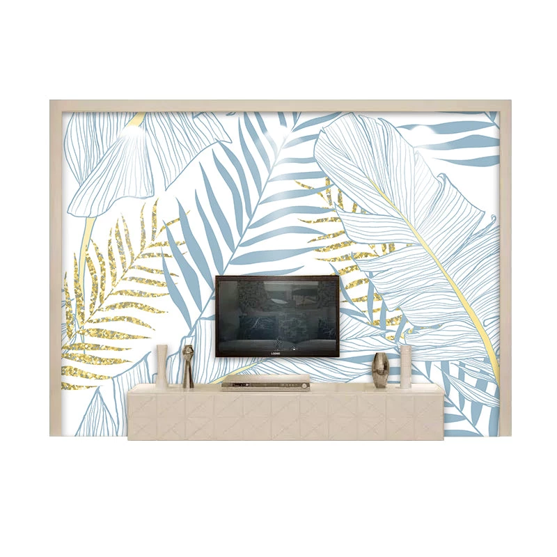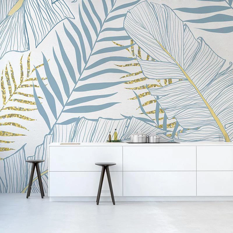 We love the combination of soft blue and yellow / gold in this beautiful wallpaper. Soft tones, bring color and life to a living space without dominating. And the nature inspired palm pattern adds to it’s vibrancy – a theme that’s been very popular in interiors lately. We see this wallpaper working really well as a feature wall in modern Nordic style interiors. Working out how much you need and ordering is easy – just follow our simple instructions below, and we’ll custom size to your wall and ship it to you free worldwide.