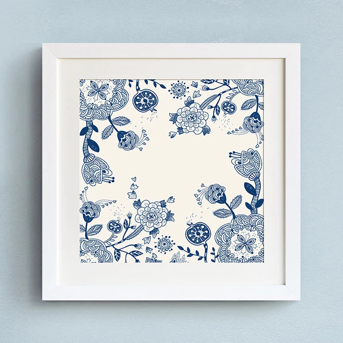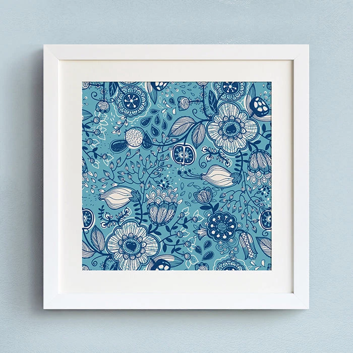 Bring in visual poetry to the favorite space in your home in the form of our Blue Floral Wall Art pieces. These botanical beauties come in nine different styles, colors ranging from an enticing aquamarine to subtle midnight blue. Put them up together to create a classic gallery wall that will turn quite a few heads in admiration. The classic white frame adds an elegant appeal to the pictures, making them look almost ethereal. Every wall art piece is ready-to-hang right out of the box.