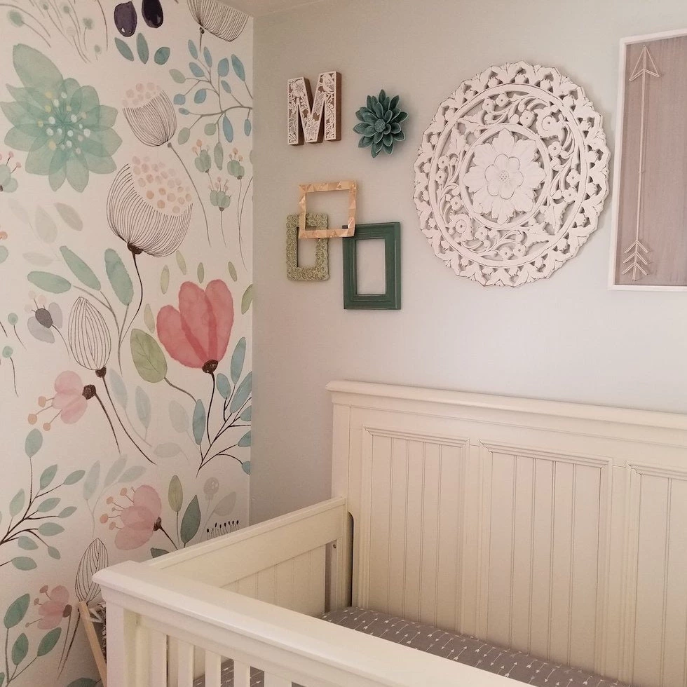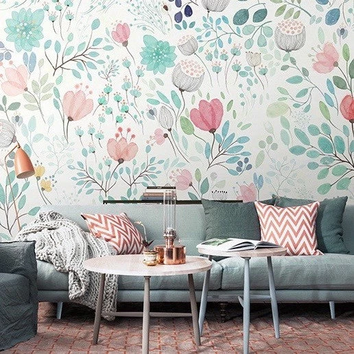 This pretty wall mural is bursting with beautiful botanicals. Featuring paintings of lotus flowers and lillies in soft water colour hues of pink, green and blue. It’s versatile enough for living space with a feminine touch or the kids room. See the instructions below to calculate how many square meters you need for your wall, and then order the Quantity here accordingly.