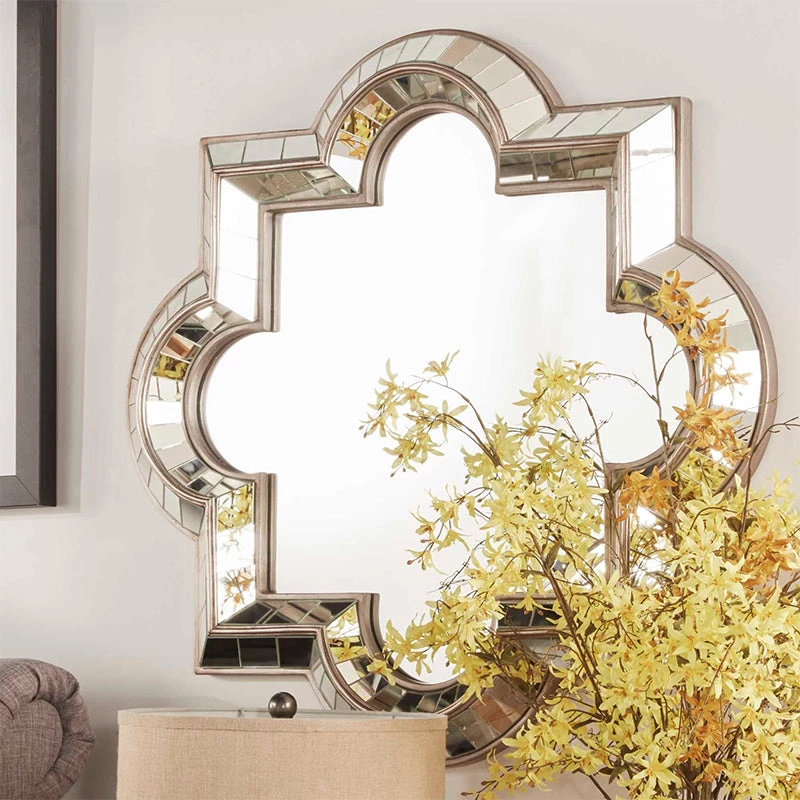 A mirror in a room is traditionally used to create space and depth, but what if you could do all of that while also having a piece of wall art? This Cloverleaft Art Deco Decorative Wall Mirror features elegant curves will not only soften a space, but will also exude luxury and glamour. A rounded shape with a scalloped edge would add a lovely touch of warmth to your dining or sitting area.Â