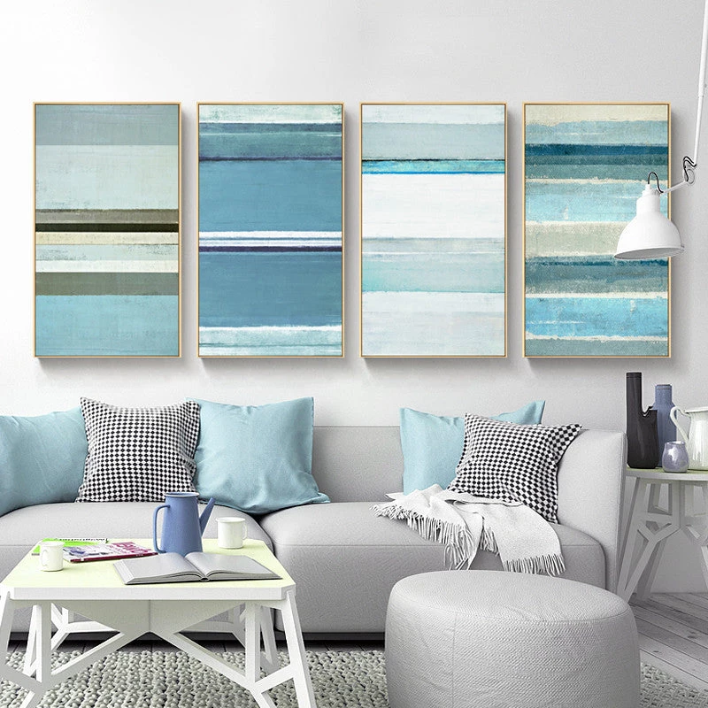 We love the Coastal Blue Wall Art for its artful modern interpretation of the ocean. It has calming hues of blue which range from lighter to the darker shades. The use of premium quality canvas ensures that the print remains intact for years together. Natural wood has been used for framing this amazing artwork. We have four available styles that come in three different sizes so it works well in the living room, master bedroom, office as well as the study room. Nature lovers would admire and cherish this lively artwork if you gift it to them.