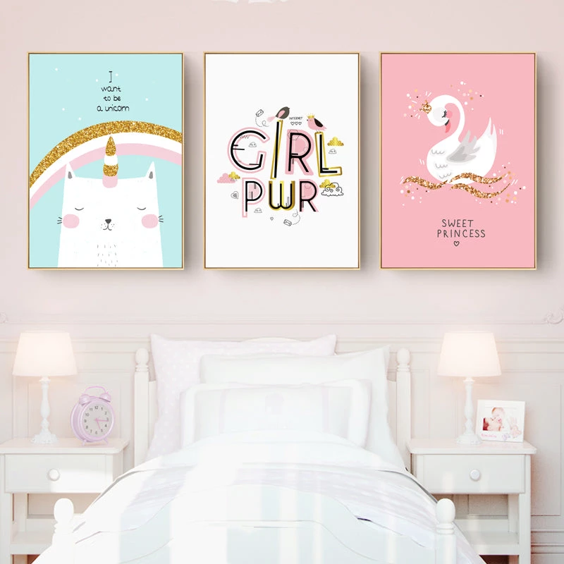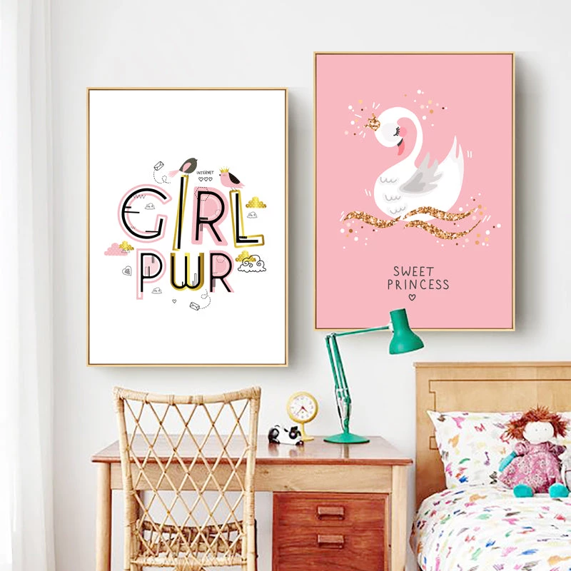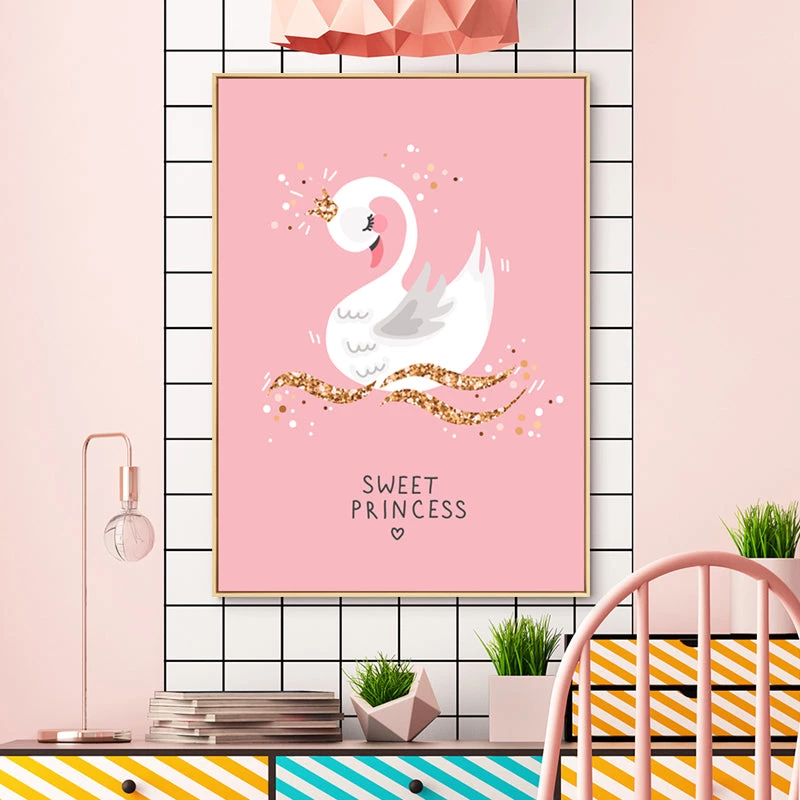 We love these cute girls room art prints. They make a great addition to girl’s rooms from toddler to teen, thanks to the adorable characters and vibrant hues. The cute swan, rabbit and cat on the framed canvas prints look adorable. The four variations of this artwork are available in five sizes that are delivered to places throughout the world.