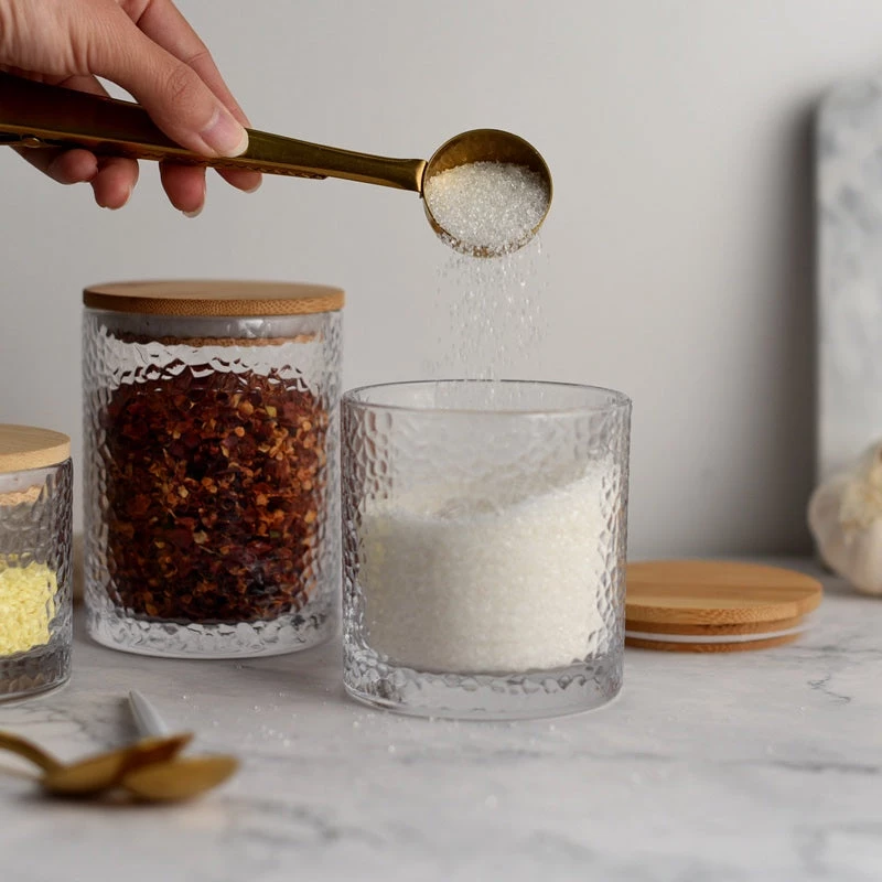 If you’re looking for an ideal solution to your kitchen stacking requirements, our Dimple Glass Kitchen Condiment Jars are sure to impress you! The textured glass and wooden lid give the jars a unique appearance and they do a perfect job of being compact storage units for your spices and groceries. These jars are available in three sizes – small, medium and large. You can also order a set of all three jars and give your kitchen a stylish makeover.