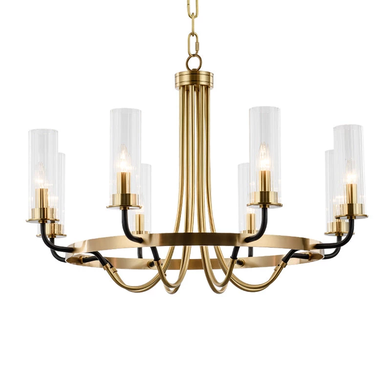 This stunning gold chandelier combines a familiar classic design with modern simplicity and elegance. It retains the elegance and glamour of traditional chandeliers, but without the excess, and with a simple form that works well with modern interiors. Available in two sizes, it makes a great statement piece for elegant living or dining areas.