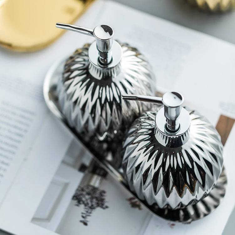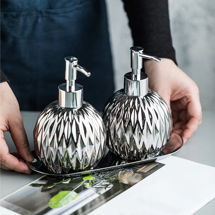 A pretty bottle to add a hint of style to different areas in your home. Use this Elegant Silver Faceted Soap Dispenser to decant your favorite liquid soaps. Have this filled with hand soap and place it next to your kitchen sink. You can also fill it with shampoo, conditioner, or lotion, and have a neater and prettier toiletry set up in the bathroom. This is an opaque ceramic bottle so you don’t have to worry about oxidation. The bottle is designed with a textured and glazed finish and is topped with a metallic silver-toned pump dispenser.
