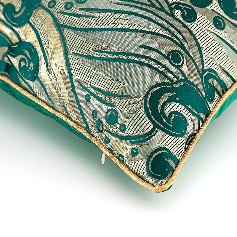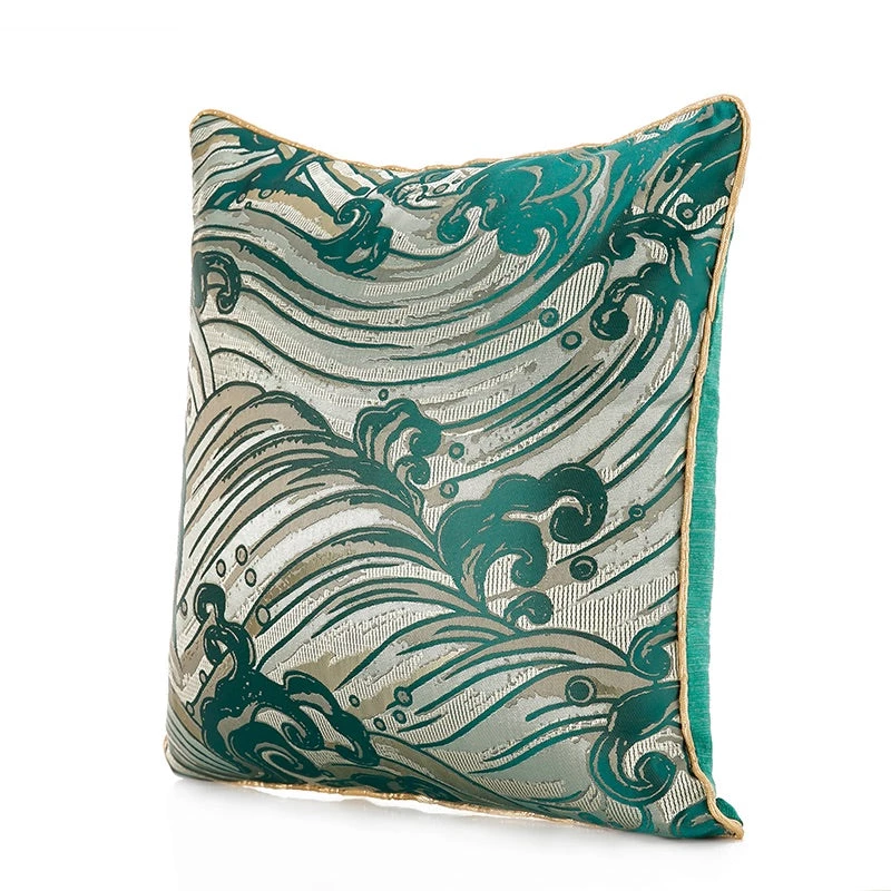 Oh wow! This Emerald Japanese Wave Throw Cushion may look traditional at first but look closely and see its contemporary update. Crafted from quality Jacquard Satin and embellished with golden trim, this printed cushion cover in emerald green color scheme is not to be missed. We like how it exudes a modern, playful, elegant and romantic vibe all at the same time. Get this decorative pillow today and see it bring a unique sense of style to your living space.