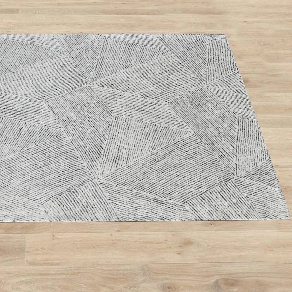 The Easter modern white and grey rug is one of our favorite rugs. Best quality wool has been used to manufacture this rug which gives a smooth and cozy feel under feet. It is hand tufted and has a smooth texture. In order to complete the design, this rug has a fabric backing. It is ideal for your bedroom and study room where the foot traffic is less. Vacuuming it on a regular basis will ensure a reduction of shedding. Pair it with a rug pad underneath to position it well on smooth flooring surfaces. It has three available sizes which are shipped worldwide for free.