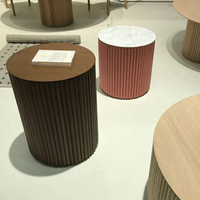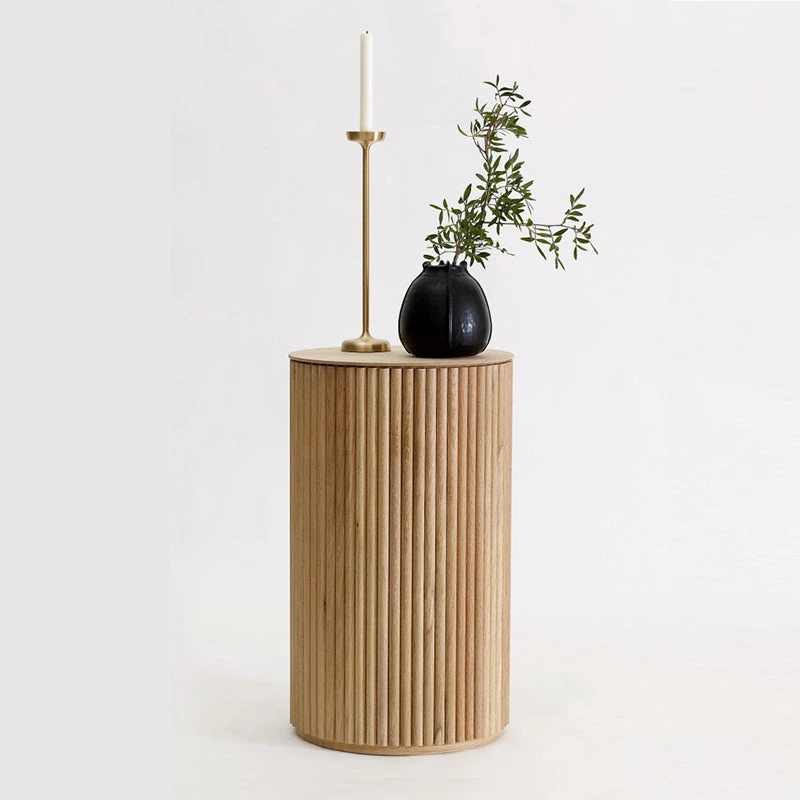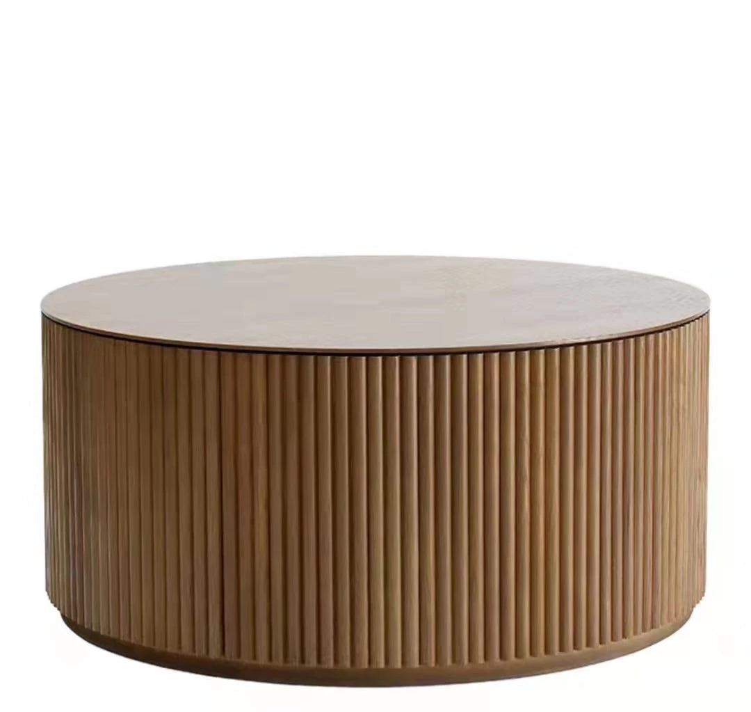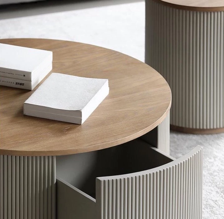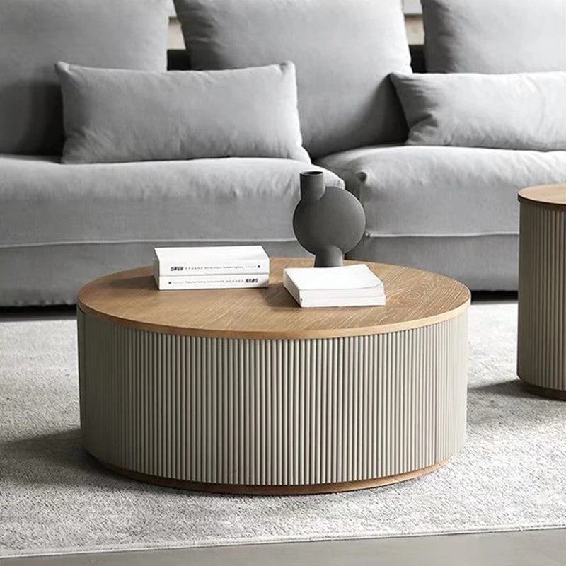 The panelled side of this Art Deco Solid Wood Round Coffee Table is echoed by the striped columns. This coffee table is large and offers a uniquely modern presence with rich, natural, soft shapes, making it ideal for larger living rooms and offices. The table top and wood base are both made of solid pine wood. The top is the same colour as the bottom. As an option, a marble top is available. Available in a variety of sizes ranging from 35cm to 100cm to accommodate a smaller home or a larger lounging space. We’d suggest using a darker stain for the coffee table and a lighter colour for the side table as a set.