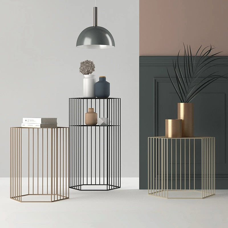 The simple design of this Hexagon Metal Side Table will make it a timeless addition to your home. The design is versatile and can be used as a coffee table, a bedside table, or a night stand. Available in three different sizes, and in three different colors – gold, black and white colours, you can cluster them together to create a stunning effect. They are great display for pot plants, books or home decorative objects. The large size with two shelves is ideal for the entry hall or an empty corner in your room.