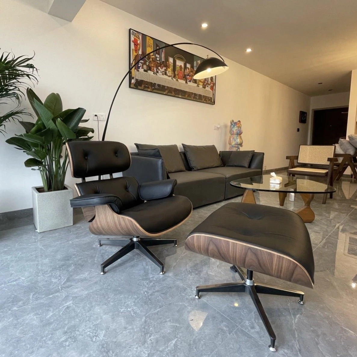 Do you recognise this iconic lounge chair from movies or coffee table books? The original Eames Lounge Chair, designed in the 50’s, has been a significant piece of furniture for decades. It’s a classic mid-century design that not only looks good, but also makes you want to sink into it. Our Replica Eames Lounge and Ottoman offers luxury comfort and support. It’s made of soft Napa leather, a high grade soft smooth leather with a natural look and feel that’s been preserved with a specialised finish. This beautifully designed Lounge is a classic and a great fit for any home, and at an affordable price. It’s available as a whole set or individually.