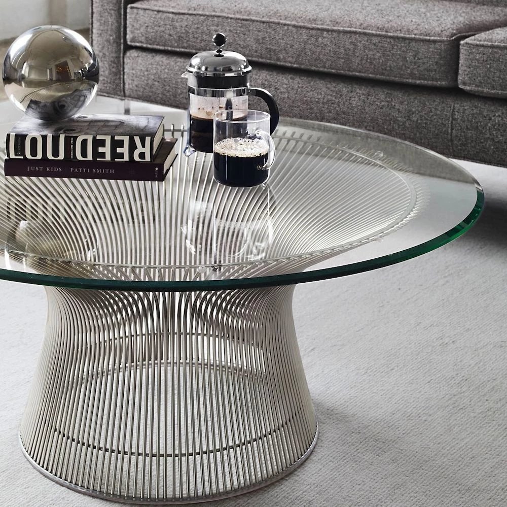A design classic, the Platner Coffee Table has a simplicity and elegance that bring an understated lux to a lounge setting. Created by American architect Warren Platner, it looks as good today as it did when it was designed in 1966. Our faithful reproduction is made of stainless steel with an 80cm glass table top.