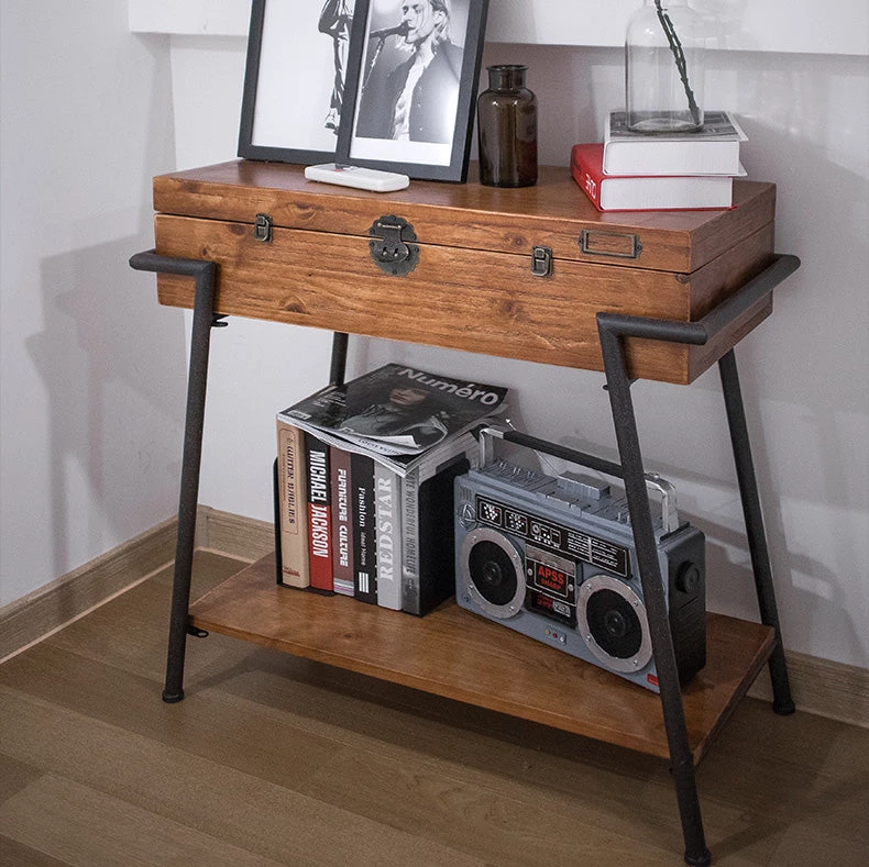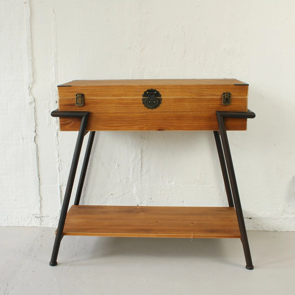 Bring some East-meets-West charm to your home with this beautiful vintage style, solid wood console table and chest. The mix of stained wood and steel also give it a cafe industrial style feel. Lift the lid and it can also be used for storage, plus a bottom shelf for shoes or decorative items. Great for an entrance hall or bedroom.