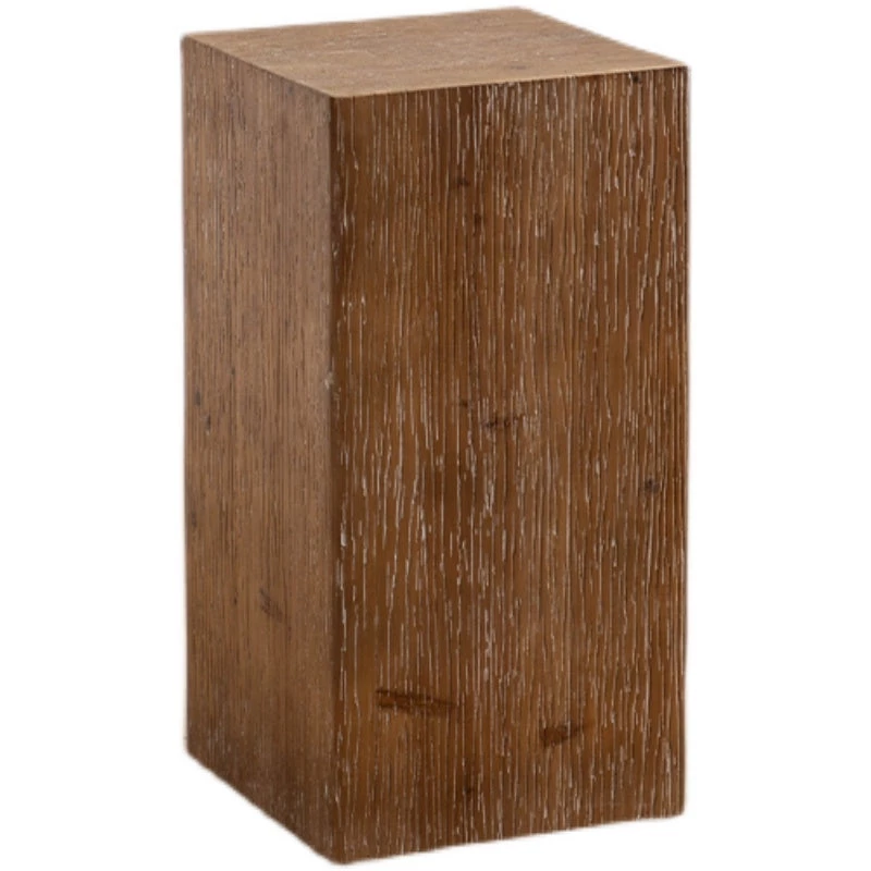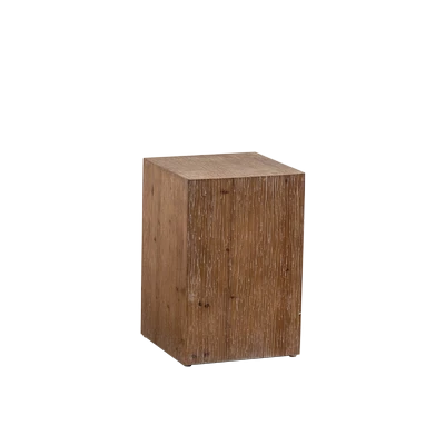 This Wooden Block Side Table is suitable for use as a bedside table, a stool or a coffee table (group several together). The warmth and rustic nature of raw elm wood are combined with the elegance of simplicity in this wood column. Each piece is handcrafted and has a vintage finish. This striking decorative piece is the ideal accessory to any room.Â