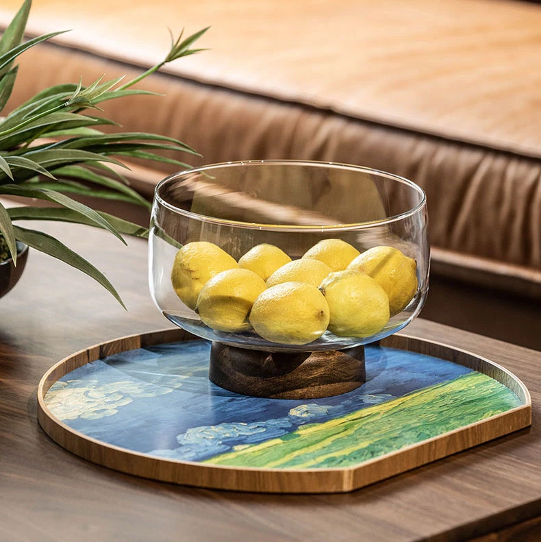 - Note: The base of this fruit bowl is made of natural wood and each piece is unique. Variation in color, pattern may occur