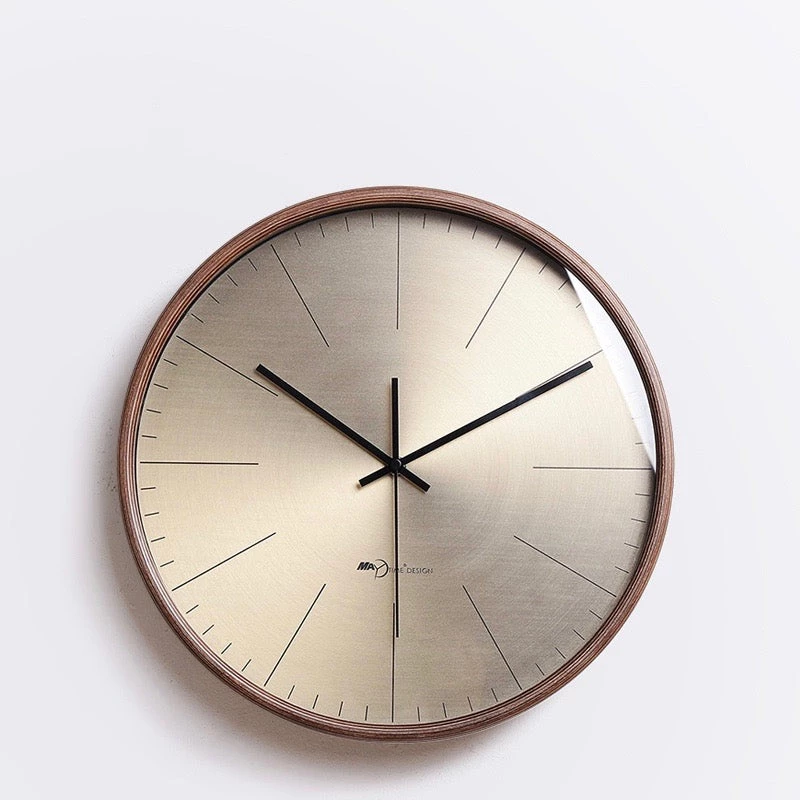 Amplify the visual appeal of a space with this Gold Bauhaus Style Wall Clock. It’s simple yet classy and is probably one of the most sophisticated clocks you’ll find out there. The clock’s clearness and functionality are obvious and admirable. Finished with a wooden frame, this wall-mounted timepiece won’t go unnoticed. The Gold Bauhaus Style Wall Clock is available in three different diameters with numerals or baton options for the hour markers.Â