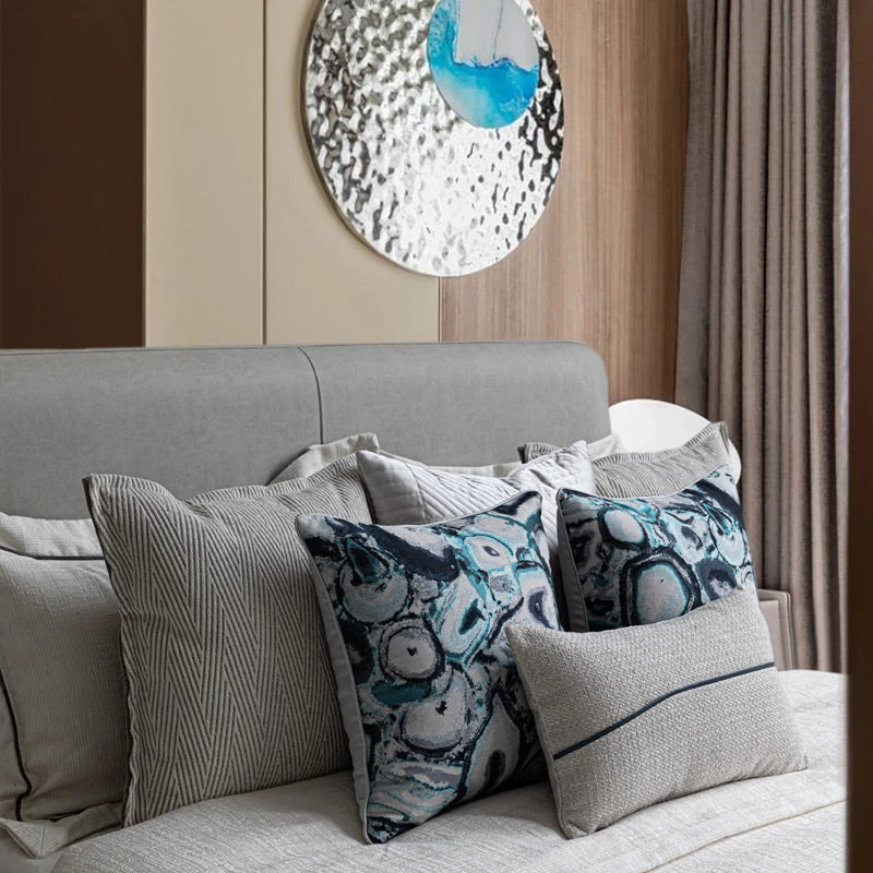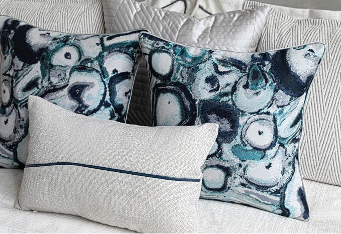 Transform your space with this set of Grey & Blue Agate Pattern Bed Cushions. Get the whole set or build your own bundle to style your bedroom or living space. This cushion set is available in four different styles and sizes, with an option to include a bed runner suitable for a 1.5m or 1.8m bed.