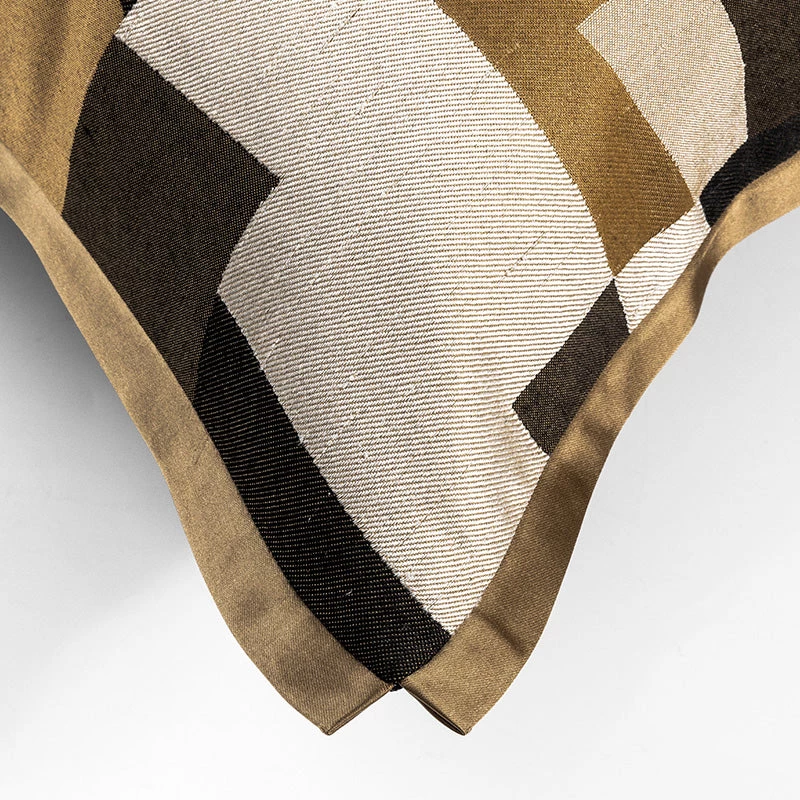 This Herman Art Deco Throw Cushion lets you add visual interest and a pop of muted color to your interiors. The use of angles, shapes, and lines on this pillow cover is a nod to Art Deco’s bold yet sleek geometric patterns. The patterned front of this pillow cover features shades of lavish cream and taupe for that elegant depth. The cushion cover’s back is in smooth solid black. You have the option to get this piece as a throw cushion cover or with plush feather pillow insert.