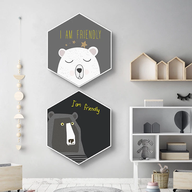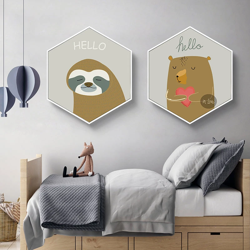 Cute and tasteful prints for kids rooms can be hard to find, so we set about finding some. We love these cute hexagonal shaped canvas prints that come mounted on beautiful natural wood frame. They look great individually on a smaller wall, or grouped together in multiples on a larger wall. Available in seven different styles and three different sizes.