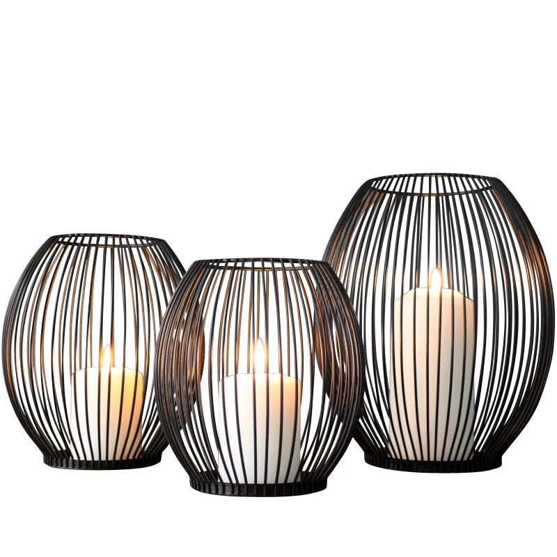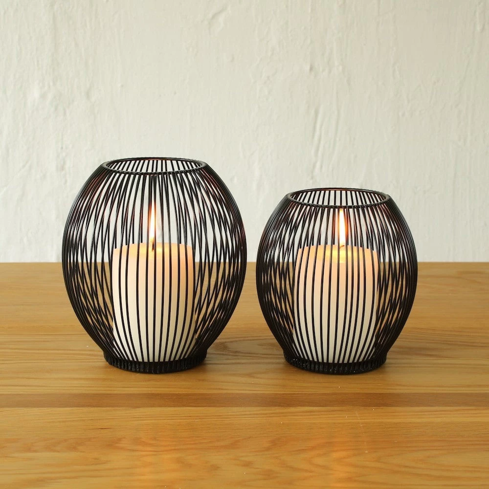 Create a sophisticated look with these modern black caged candle holders. Their minimal style constrasts beautifully with the warmth and softness of candle light.