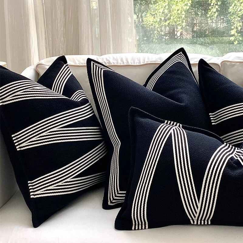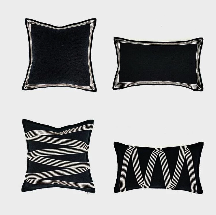 Our range of Black Cushions with White Stripes are simple yet stylish, with a minimalist style that complements any decor. These monochrome cushions are made of heavy linen, not only durable, they provide a sophisticated look that complements a variety of interior colour schemes. Two sizes are available for each design in 50 x 50cm and 30 x 60cm.