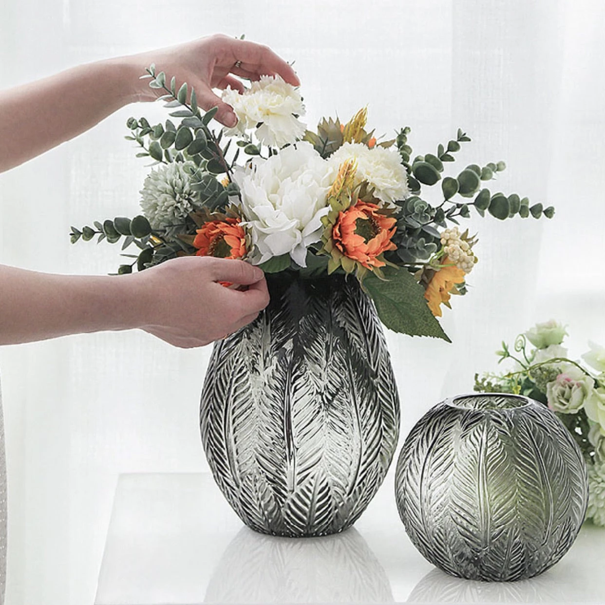 Here’s a vase that looks good with our without flowers. Now you don’t need to hide this vase away when not in use. Fill it with fresh blooms or use it as it is, it’s bound to bring a fresh look to a console table, an end table, or a buffet table. Made of glass with embossed leaves, this semi-transparent vase comes in two sophisticated shades. Get it in elegant green or get a pair of the round and tall smoke grey varieties.