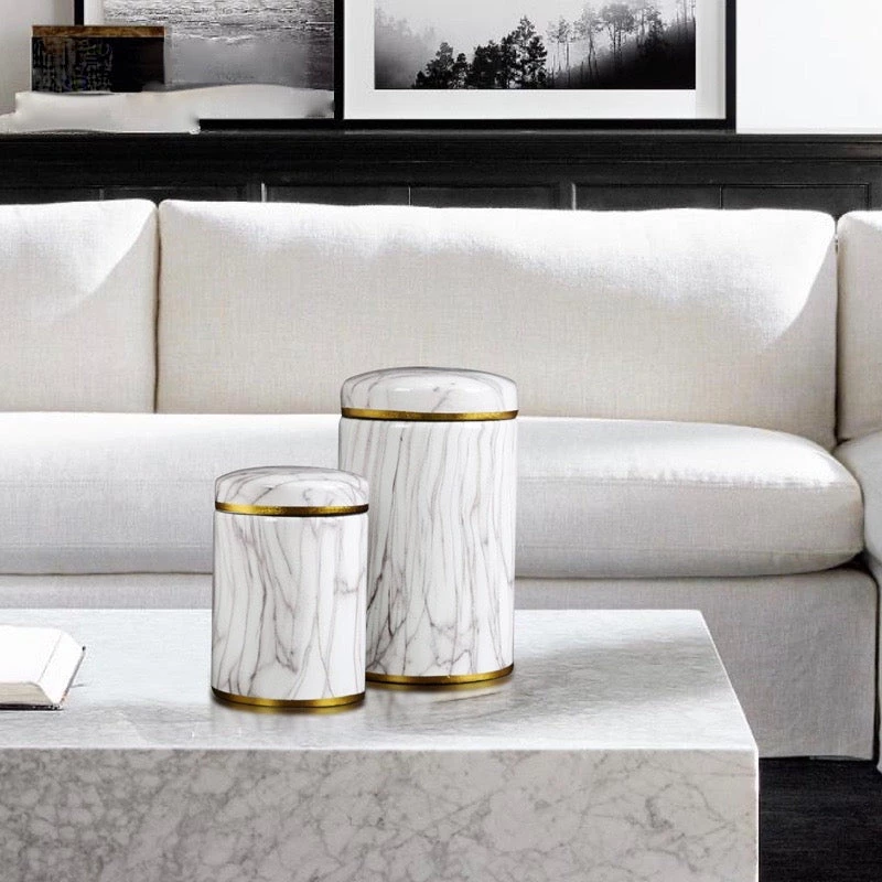 Want to add a luxurious element to your home? Display this White Marble Pattern Urn Vase. This stylish vessel will make any room look effortlessly luxurious with its marble effect finish and gold trim. Expect this decor to blend seamlessly into your existing design scheme regardless if you have a white-and-grey space or dark velvet furniture. This vase will sit well, too, atop a real marble tabletop or a wooden coffee table. Get this vase in all three sizes and go glam with your home decor.Â