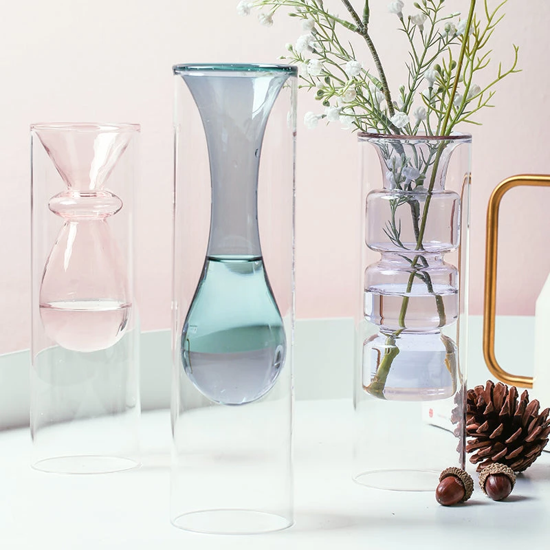 Anything that gets the honor of holding beautiful floral arrangements has to look gorgeous too. We realize this and thus, have come up with our stunning Inside Out Double Walled Glass Vases that are nothing short of a visual delight. Featuring five exquisite vase shapes in colored glass nicely encased inside a clear glass wall, these vases can be a wonderful addition to consoles and tables. You can also gift them to near and dear ones on special occasions.