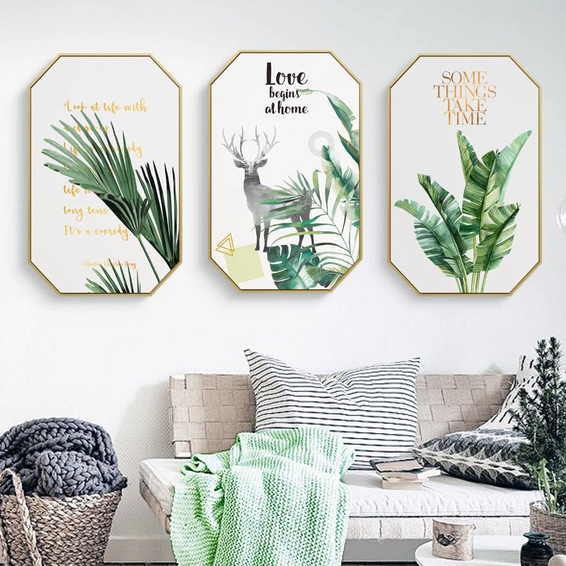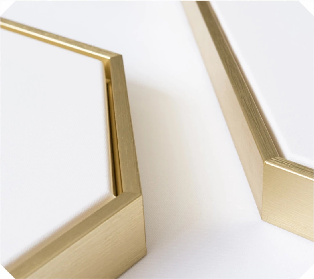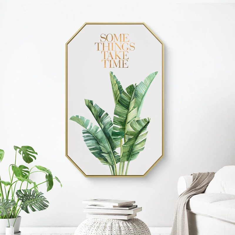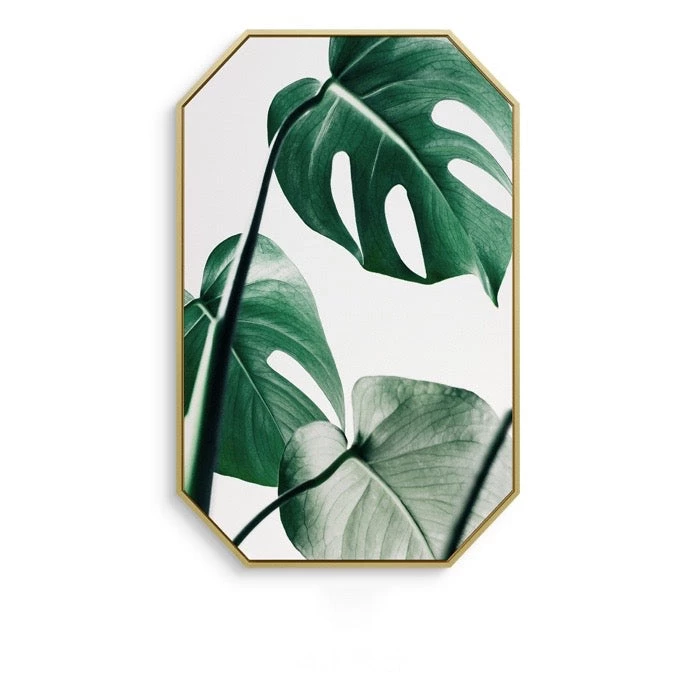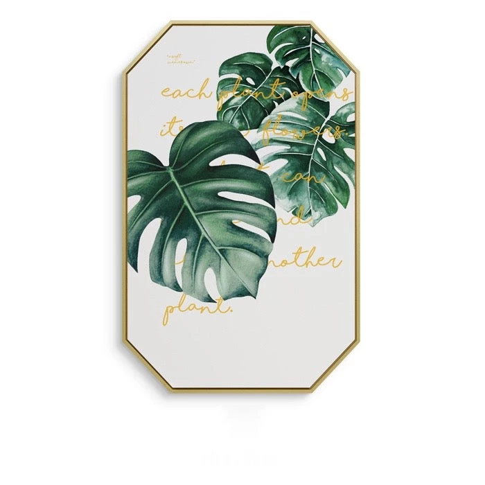 The Tropical Wall Art series is a striking collection of art prints with a distinctly botanical theme. The vibrant botanicals bring a sense of tropical tranquility indoors. And we love some of the inspiring quotes they feature too! We see them working well living room, home offices or bedrooms for refreshing look. The gold floating frame with its hexagonal shape adds further interest to this vibrant wall art series. Choose from a range of styles and six size options.