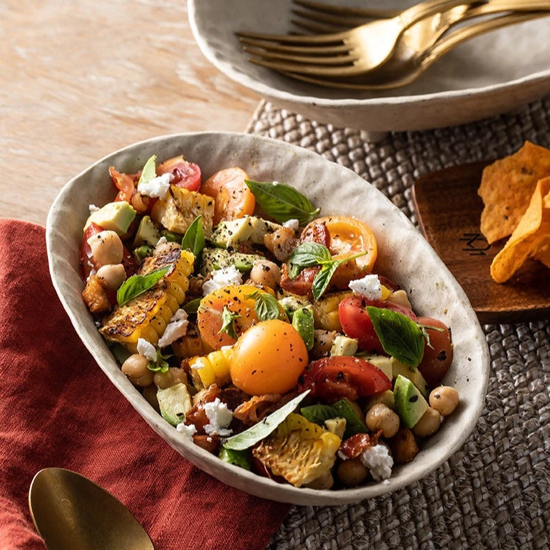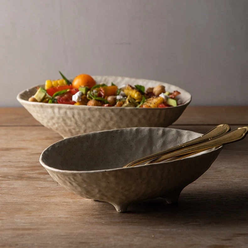 The Jules Oval Ceramic Serving Bowl is rustic but adorable. Use this handcrafted stoneware to serve food to your guests the next time you host a dinner party. It will undoubtedly enhance your dining experience. This ceramic bowl is oat in colour and has a beautiful matte texture. Each piece is unique, and the imperfections add to the charm.