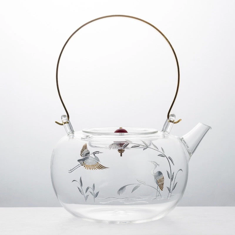 What a gorgeous glass tea pot this is! It beautifully displays the steeped tea’s color with its see-through glass chamber. The pot has just the right size, one that’s big enough to let tea leaves expand and allow the water to circulate. Adding beauty to the minimalist silhouette of the glass pot is a Japanese flora and fauna print and a chic metal handle in gold finish. Whether you’re having afternoon tea with friends or by yourself, this tea pot has the soothing look that can make your steeping moment a truly relaxing one.