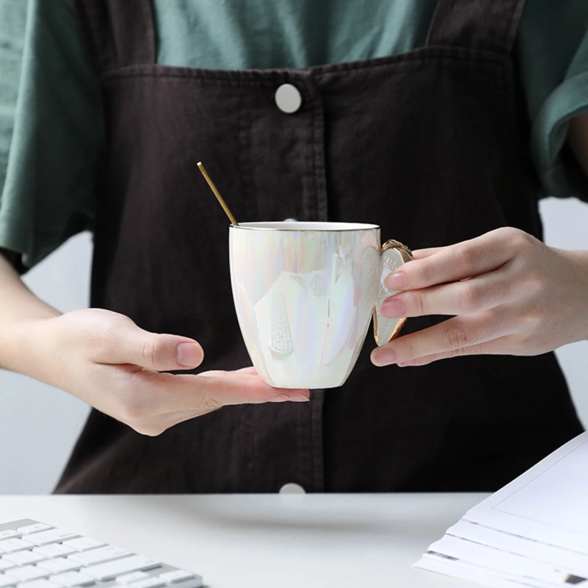 - Materials: Ceramic with pearlescent and gold painted detail