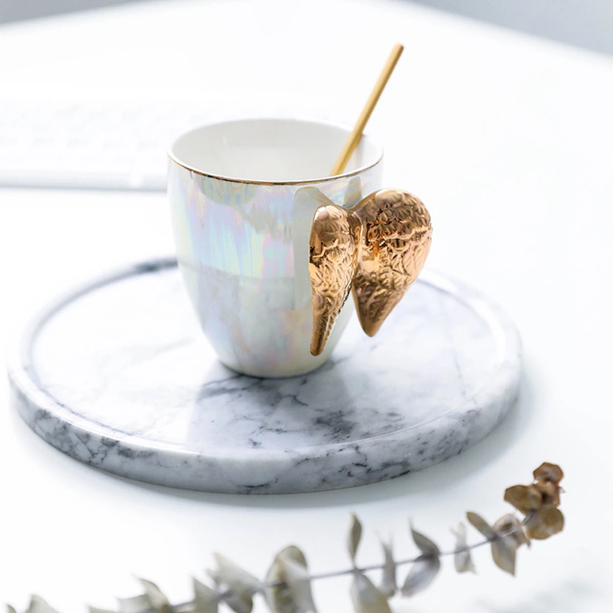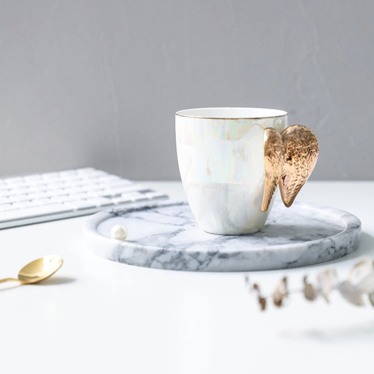 For people who love their coffee, there can never be such a thing as too many coffee mugs. And if the mug is as sophisticated and gorgeous looking as our Pearlescent Angel Wings Coffee Mug, you’d be forgiven for wanting to drink the beverage all day long! Crafted out of delicate ceramic with pearlescent finish, this awe-inspiring coffee mug has golden-hued wings for a handle that give it an almost divine appearance. Add it to your coffee mug collection or gift it to a fellow coffee lover.