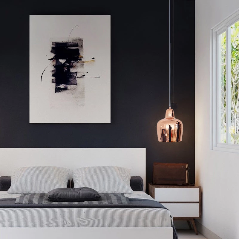 We love the elegant form of this beautiful pendant light. Closely resembling the form of a cow bell, it’s elegant form and gloss finish make for classy focus lighting, in multiples above bar areas, or even as hanging bedside lighting.