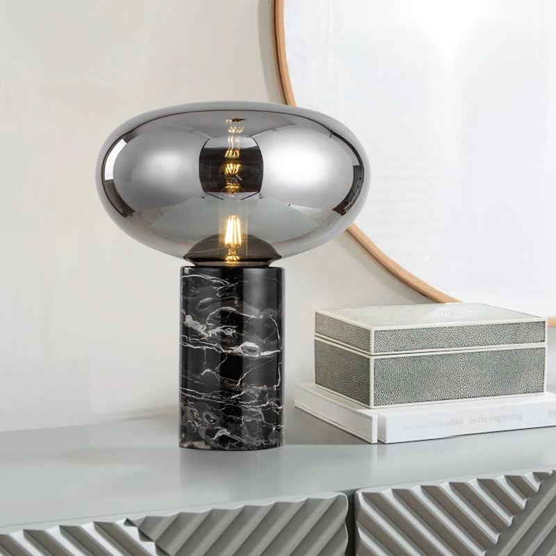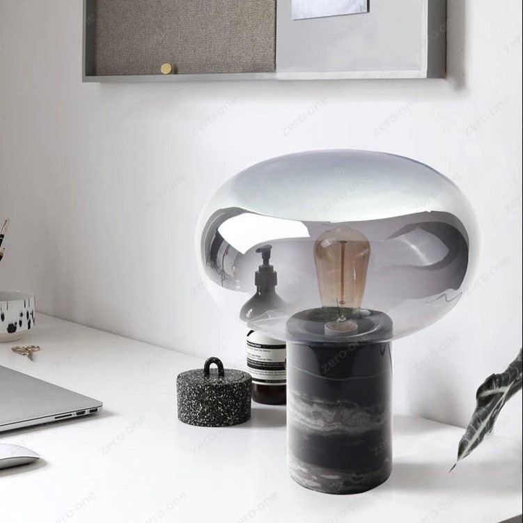 - Features: Hand blown glass lamp shade, marble lamp stand