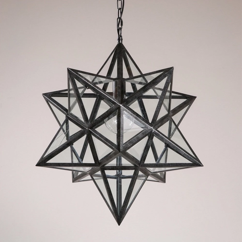 Bring some light and drama to your living space with this beautiful pendant chandelier. Made of bronze / copper with glass panes, it makes a perfect chandelier for your entrance hall, or a stunning statement piece to define your dining area.