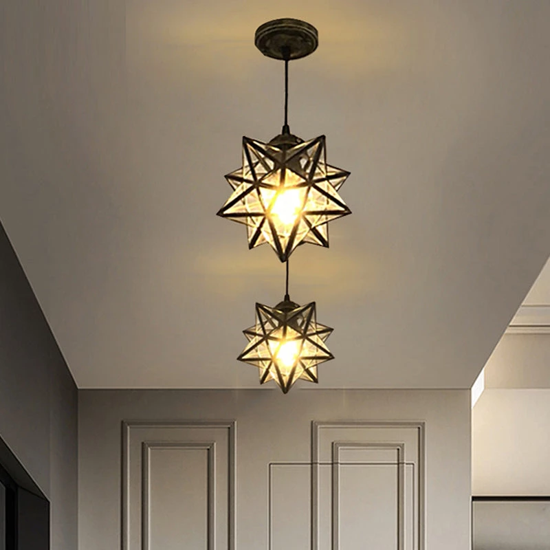 - Materials: Iron shade (black) / Copper (vintage gold) with glass panels