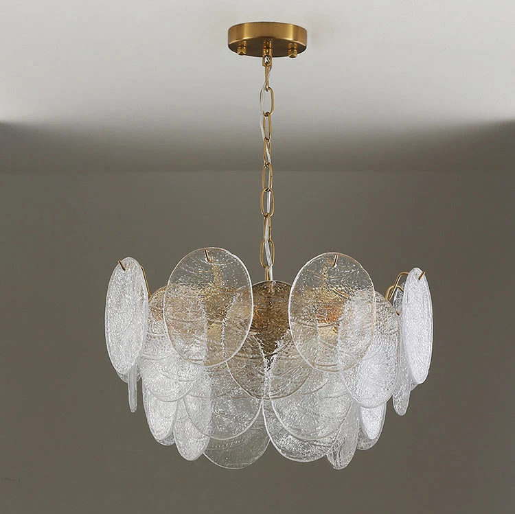This beautiful chandelier resembles a kind of art deco style and glamour. We love the glass petals that combines the glamour of gold with frosted glass, for a beautiful retro modern mash up. This modern chandelier makes a stunning statement piece for a living room or dining area and we see it working well with elegant and eclectic interiors. It’s available in three sizes.