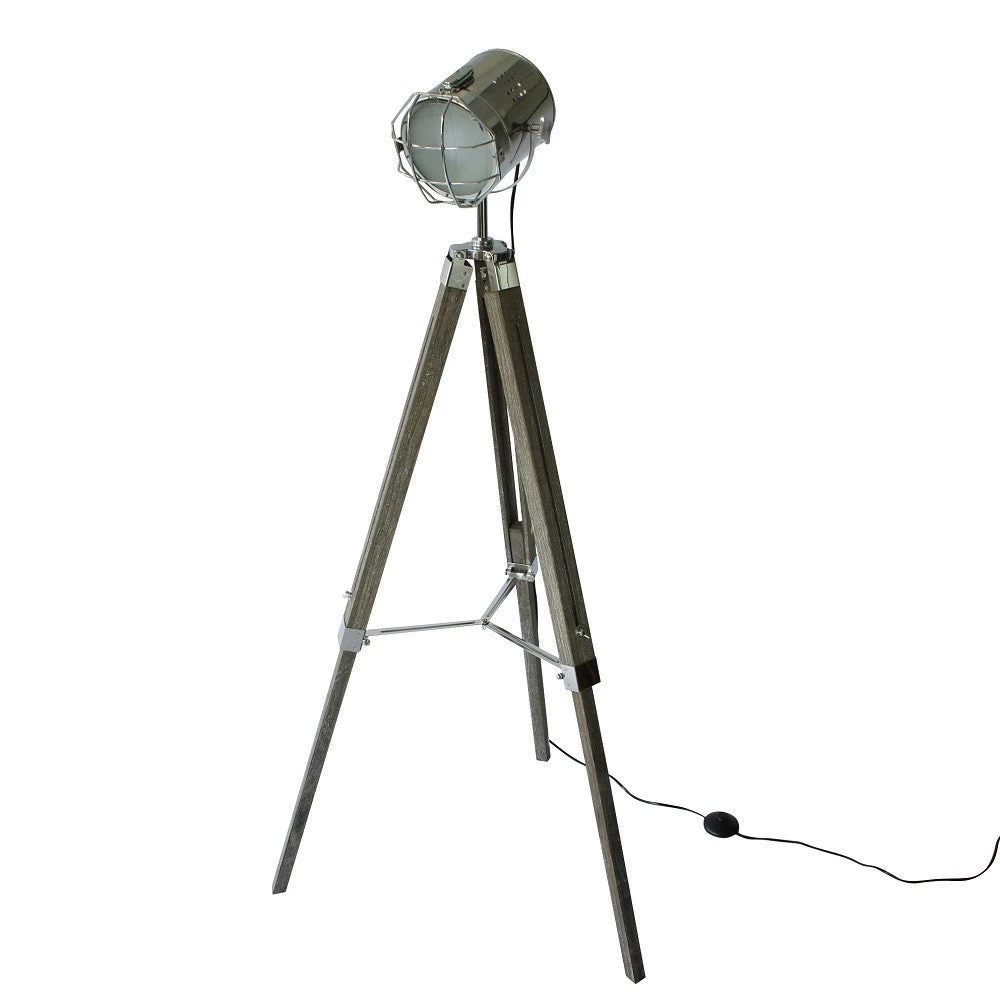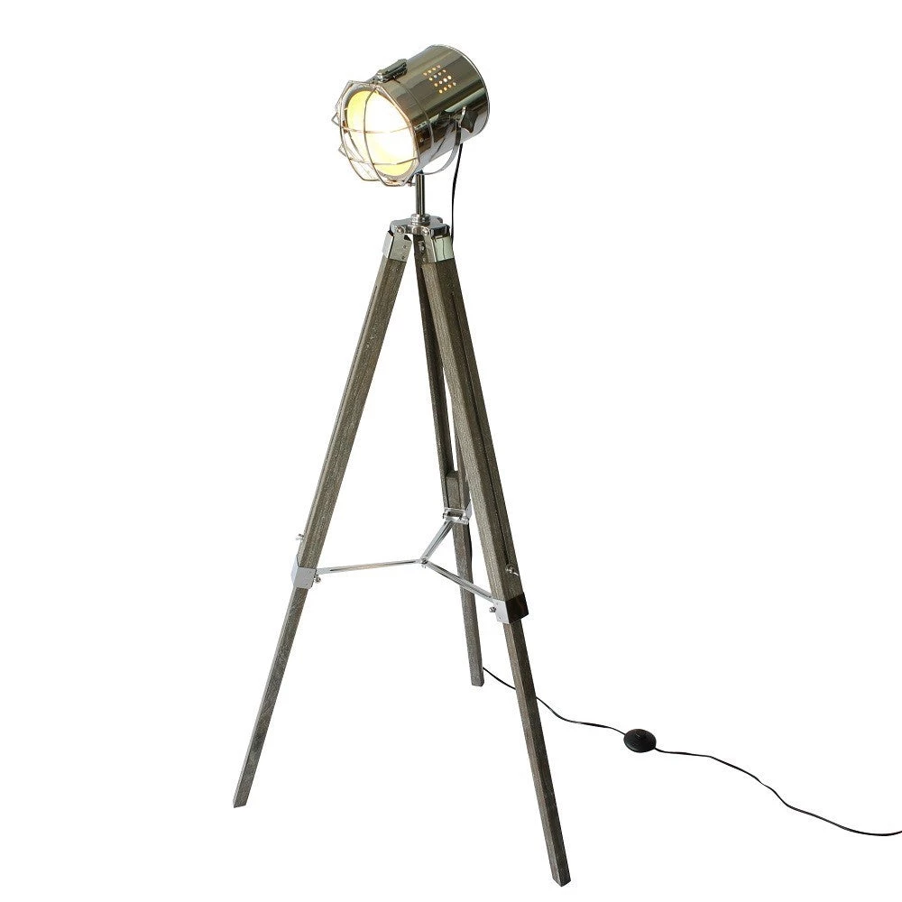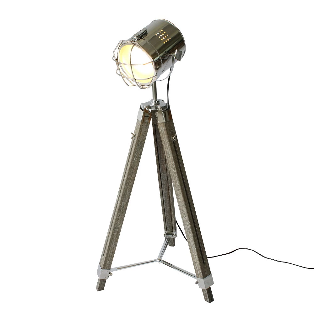 Looking like it’s out of a 1950’s film set, this beautiful solid wood and steel tripod spotlight lamp brings style and character to your living space. The polished steel spot light is adjustable, making it a great reading lamp beside your favourite lounge chair. The solid wood legs have a lovely weathered finish and the height can be adjusted – so it’s felxible to your living space.