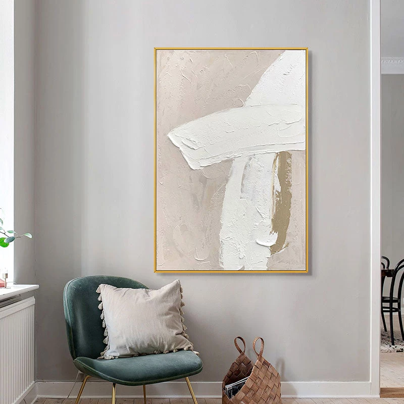 Neutral colours are timeless, and when used correctly, they can be just as exciting and aesthetically pleasing as bright, vivacious colours. Our Modern Abstract acrylic painting in beige and white tones creates a warm and welcoming environment. It changes the overall look of your room and complements any colour scheme. This handcrafted 3D texturised oil painting, elegantly framed in brushed aluminium black, silver or gold, will instantly update your home.