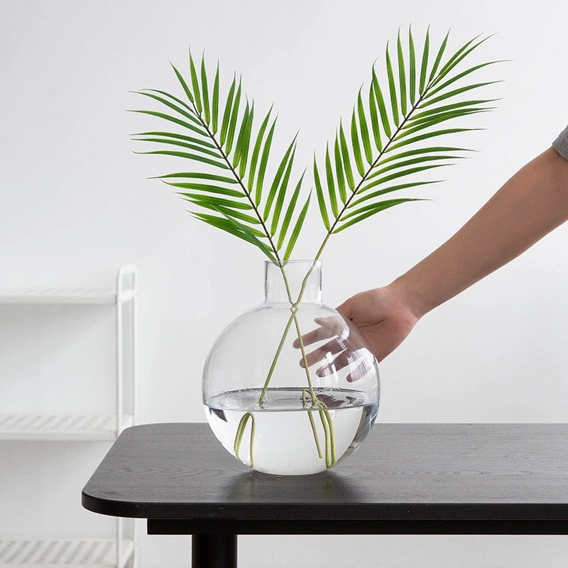 We’re amazed that vase with a shape reminiscent of laboratory equipment could look so beautiful! The unusual shape combined with a clear glass form, make for a stunning addition to modern living spaces. It looks great paired with a simple green plants like a palm from. And for those who are lacking in the green thumb department, it’s also available complete with a beautiful and realistic faux palm frond.