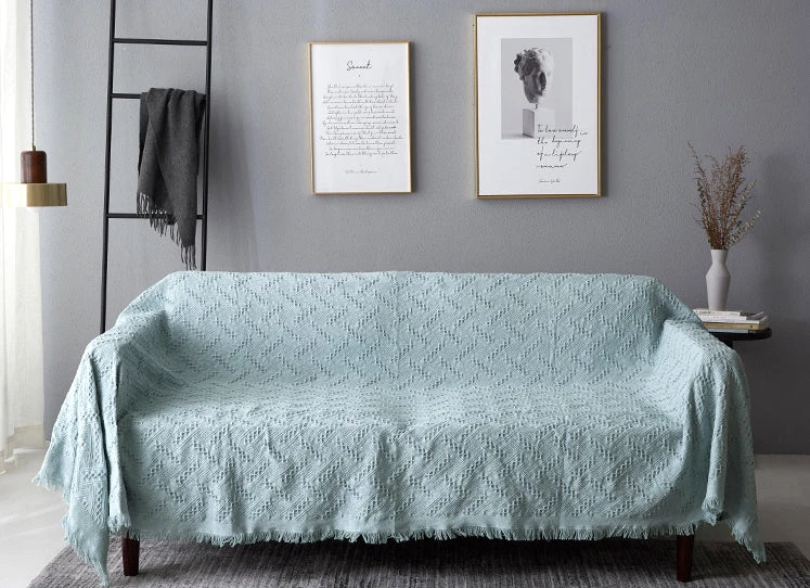 We love the Morandi color palette of this elegant Nodic Muted Color Cotton Throw Blanket. Made of 100% cotton, this simple throw blanket has a modern aesthetic that works well with Nordic inspired interiors. A stylish and cozy addition to the sofa, or the bed. It gives you a peaceful, elegant and pure feeling, yet the fabric is durable, and it can be washed frequently without fading. Available in four different colors and in two sizes which fit a single and a double sofas.