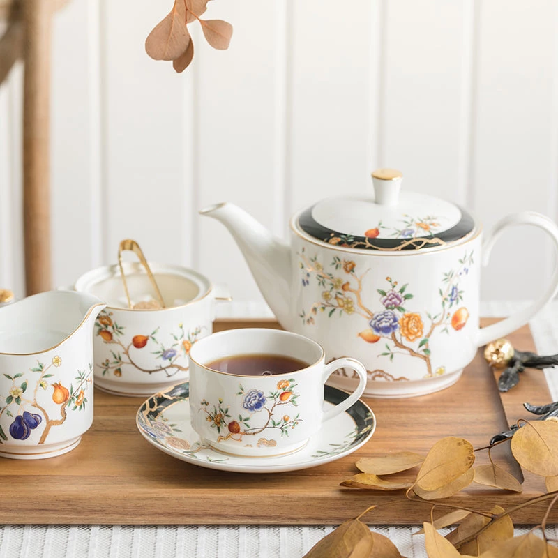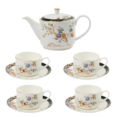 Want to have a truly great tea experience? Steep fine tea on a gorgeous tea pot and serve it in equally gorgeous tea cups. Try this Oriental Blossom Tea Set and see how it effortlessly makes your tea drinking experience a relaxing and luxurious one. Crafted in bone china, this tea set features a modern and elegant floral theme. The print has the right balance of color and minimalism. Perfect for when you need a drink that will calm you down yet make you feel refreshed.