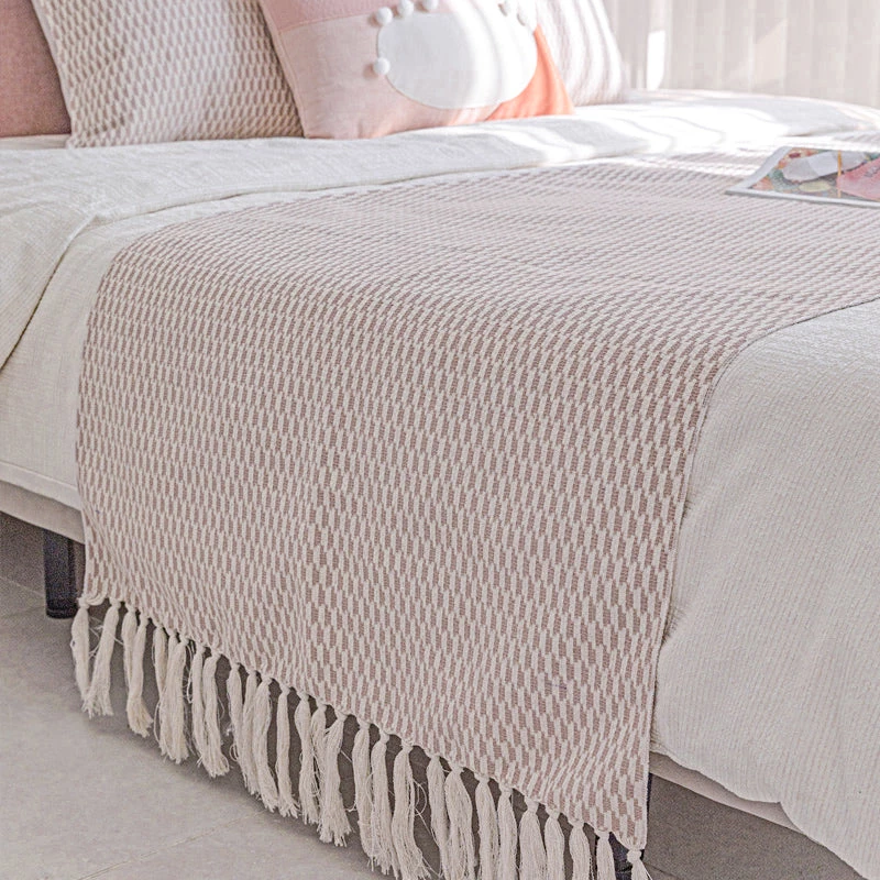 Transform your space with this set of Pink & White Geometric Pattern Bed Cushions. Get the whole set or build your own bundle to style your bedroom or living space. This cushion set is available in four different styles and sizes, with an option to include a bed runner suitable for a 1.5m or 1.8m bed.
