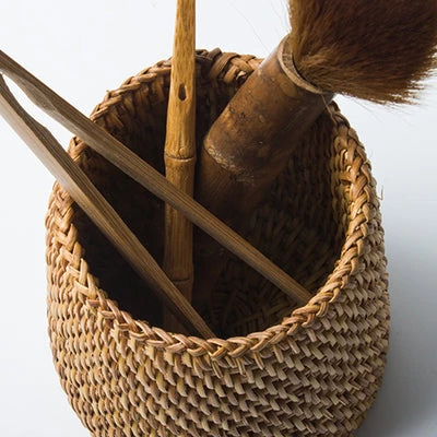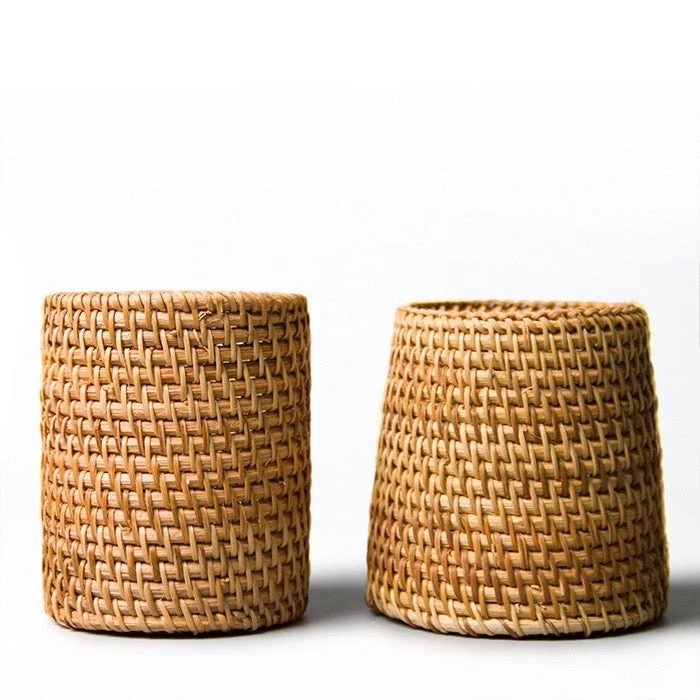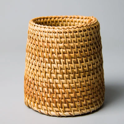 Let your dining area and kitchen exude a relaxing vibe beach-style with this Rattan Utensil Holder. This small wicker basket for spoons, forks, chopsticks and knives brings an earthy vibe to your space. Perfect for organizing flatware and for adding character to a kitchen countertop. A natural and sustainable product, this handwoven utensil holder has a versatile appeal and function, too. Feel free to use it to hold make-up brushes, pens or art supplies. Available in regular or tapered design.